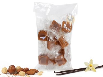 A la fin des année 70, c’est au tour d’Henri le Roux dans le Finistère de connaître le succès de cette friandise en y incorporant des noisettes à l’intérieur, des petites bouchées qui lui ont valu également un franc succès en raflant de nombreux concours culinaires. Le caramel breton retrouve ses lettres de noblesse et se veut plus haut-de-gamme, plus prestigieux. C’est ainsi le cas des caramels L’Ambr’1, que nous proposons en sachets dégustation ou en vrac, les caramels de cérémonie par excellence qui nous sont énormément demandés pour les mariages ou les baptêmes en lieu et place des dragées : exceptionnels, les caramels au beurre salé L’Ambr1 sont conçus avec du beurre Bordier, un beurre de baratte à l’ancienne façonné à la main à la texture soyeuse et au goût crémeux intense, ainsi que de la nacre de sel de Millac, un sel de cru dont la cristallisation est plus importante et aux reflets nacrés.