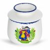 Technique ancestrale de conservation du beurre dans les foyers autrefois, le beurrier à eau était idéal pour préserver le beurre à température ambiante alors que les réfrigérateurs n’existaient pas encore ! Le beurrier à eau breton, qui sera utile à ceux qui ne disposent pas d’un frigo sur place, a également l’avantage de préserver la texture et le goût du beurre, lorsque le froid du frigo a tendance à le durcir et lui faire perdre sa saveur. Son fonctionnement est en plus extrêmement simple : il vous suffit de disposer la motte de beurre dans la partie supérieure et l’eau dans la partie inférieure (eau à renouveler tous les 3 jours et quotidiennement lors de températures élevées). Ce beurrier à eau orné de son traditionnel décor couple de bretons et liserés bleu moucheté a été entièrement fabriqué par la Faïencerie de Pornic (44)