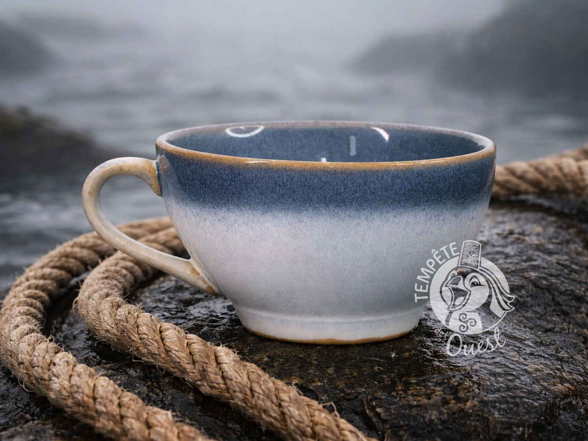 Parée d’une superbe dégradé bleu polaire et blanc à l’intérieur comme à l’extérieur, la bolée à cidre Skorneg* accompagnera vos instants de dégustation de cidre avec un joli contenant qui habillera votre table avec féérie et élégance ! Conçue en grès et dotée d’une anse ergonomique pour une prise en main agréable, offrez-vous cet essentiel pour accompagner vos crêpes et galettes et pour déguster le cidre comme il se doit et comme dans nos crêperies traditionnelles, à la bretonne !