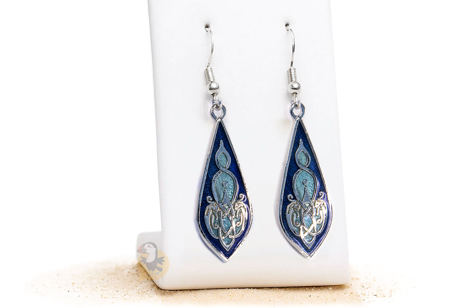 Ces boucles d’oreilles Fresques celtiques se distinguent par leur forme trapézoïdale élancée et leurs nuances de bleu profond, rappelant les teintes changeantes de l’océan. Leurs motifs finement entrelacés s’inspirent des fresques et symboles celtiques, entre force et harmonie. Réalisées en cuivre et laiton recouverts d’un plaquage rhodium ultra brillant, elles associent la brillance du métal à la profondeur de l’émail bleu, un verre coloré fondu au four à plus de 740°C. Ce procédé révèle un jeu subtil de reflets azur et turquoise. Légères et lumineuses, ces boucles d’oreilles apportent une touche raffinée et originale, que ce soit pour illuminer une tenue de tous les jours ou sublimer une occasion particulière.