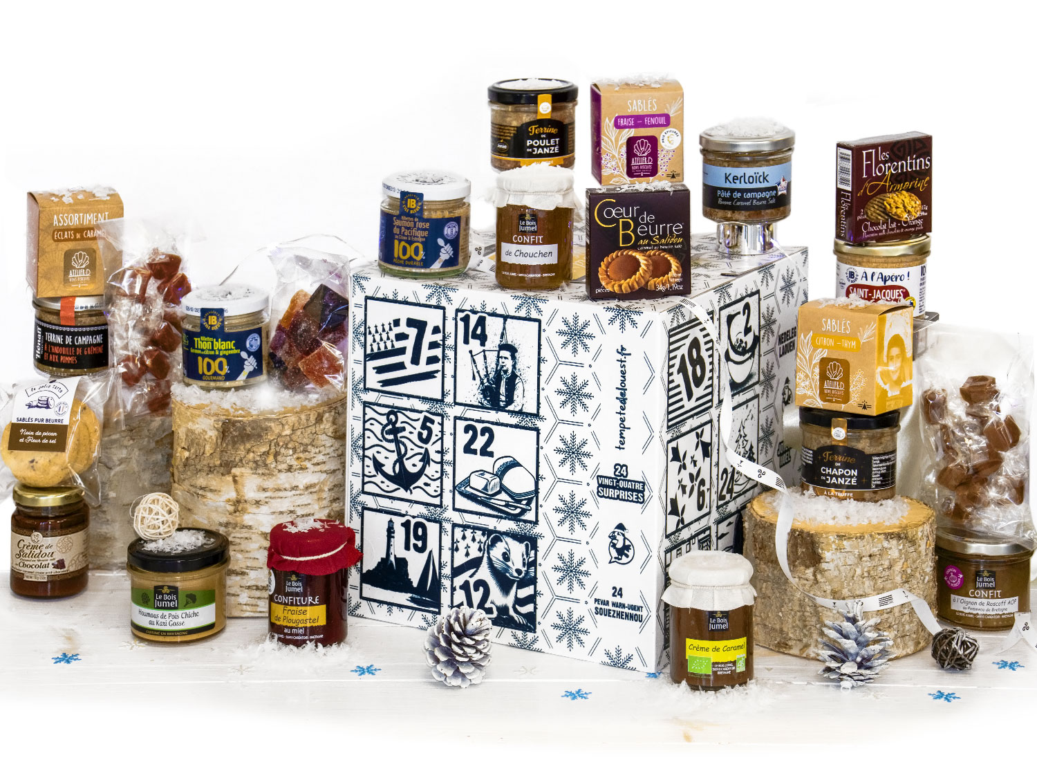 Conçu avec amour de la réflexion des surprises au design dans notre atelier et conditionné avec soin par un ESAT, structure qui accompagne au quotidien des personnes en situation de handicap, nous avons sélectionné 24 gourmandises issues du savoir-faire de nos artisans locaux. Chaque case est une découverte : caramels, biscuits, rillettes, tartinables, douceurs chocolatées et autres délices du terroir breton… De quoi savourer un vrai voyage gustatif à travers la Bretagne, jour après jour.