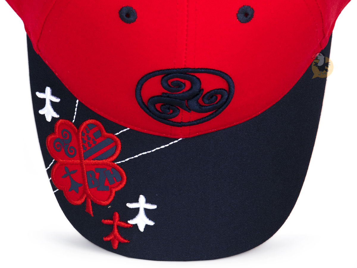 PROMO -30% ! Casquette Bretagne Trèfle Celtique Rouge et bleu marine