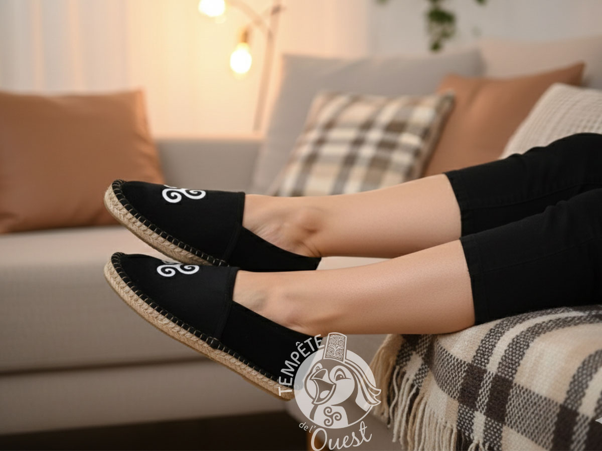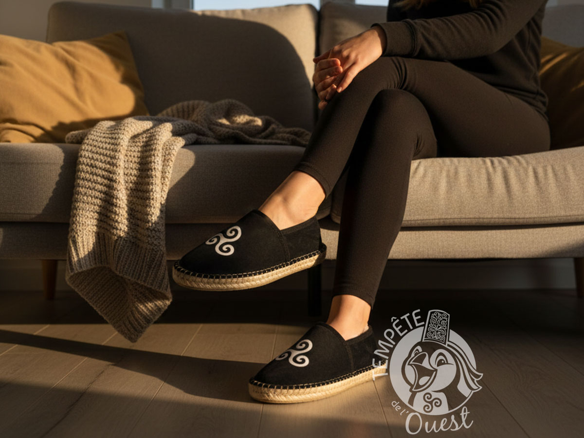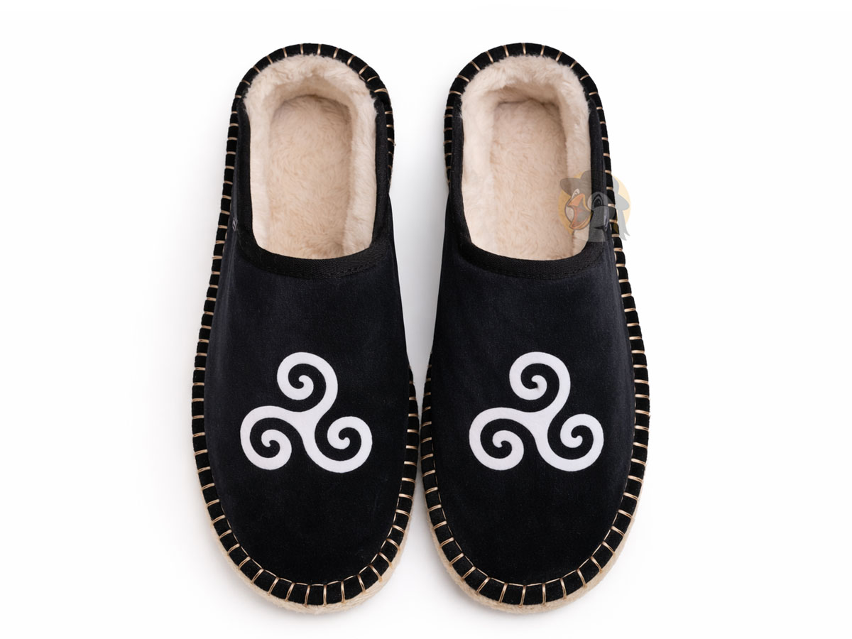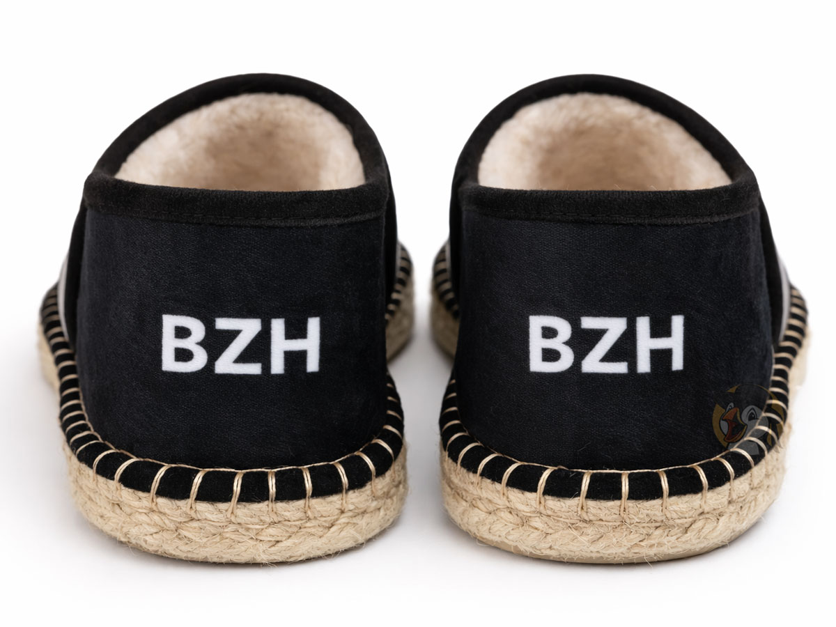 Avec ces chaussons espadrilles triskell, affirmez votre identité bretonne jusqu’au bout des pieds ! Le symbole du triskell, bien visible sur l’avant, apporte une touche celtique forte et intemporelle, et le sigle BZH (abréviation de Breizh = Bretagne) à l’arrière vient renforcer l’esprit breton de ces pantoufles.