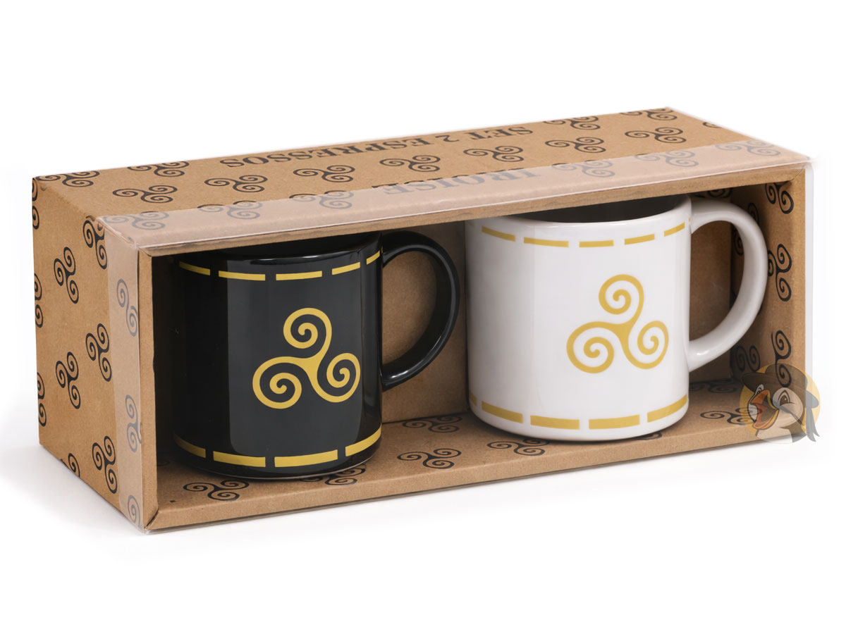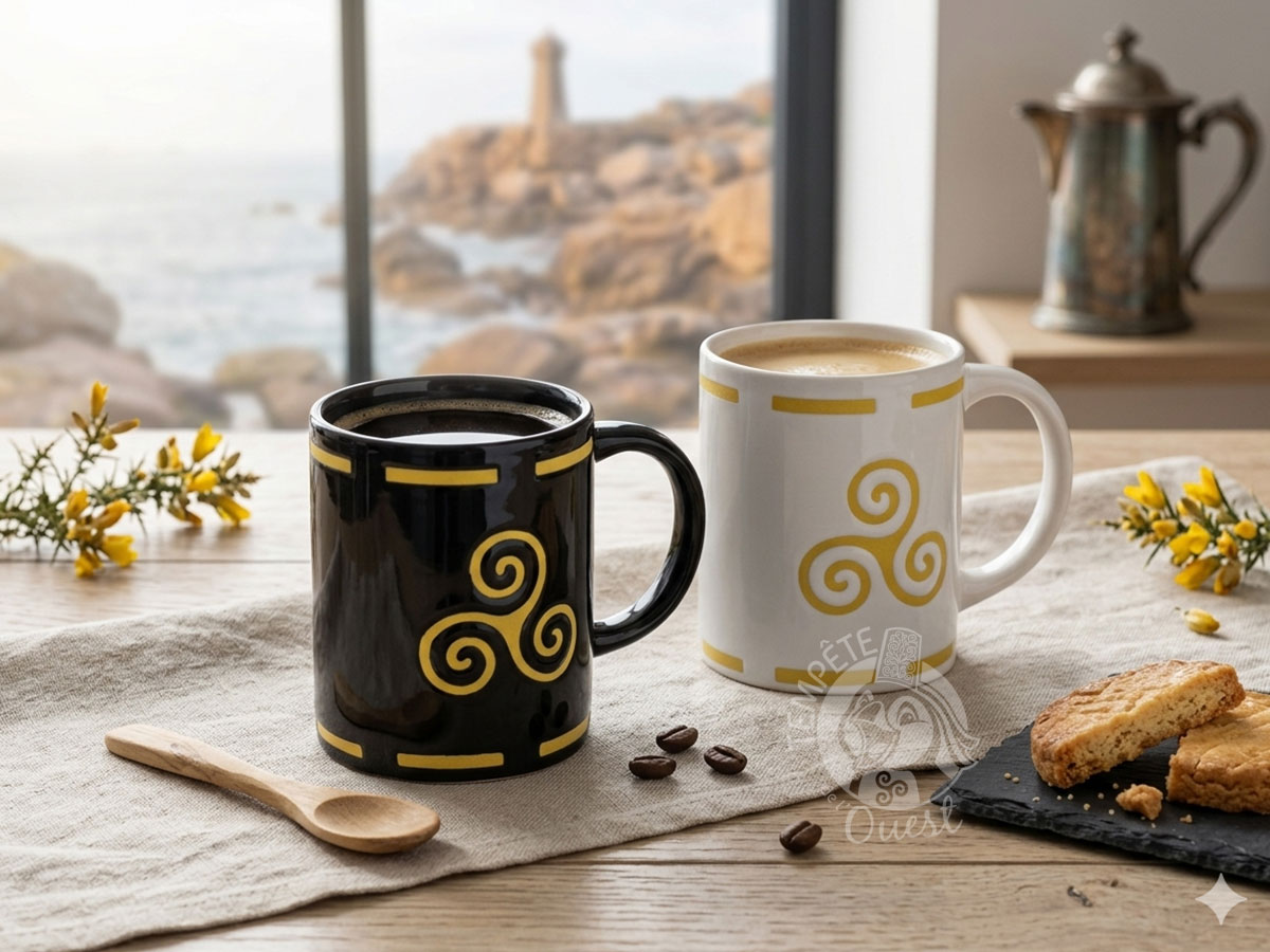 Chaque tasse est ornée d’un triskell jaune solaire, dont le fini mat contraste avec l’émail brillant du corps en céramique. Ce motif incrusté, souligné par une frise graphique, rend hommage à l’identité celte avec une sobriété très actuelle. La robustesse du grès véritable garantit une excellente conservation de la chaleur, indispensable pour savourer un expresso parfait. Côté entretien, ces tasses bretonnes sont pensées pour un usage facile au quotidien et supportent le passage au lave-vaisselle et permettent un réchauffage rapide au micro-ondes.