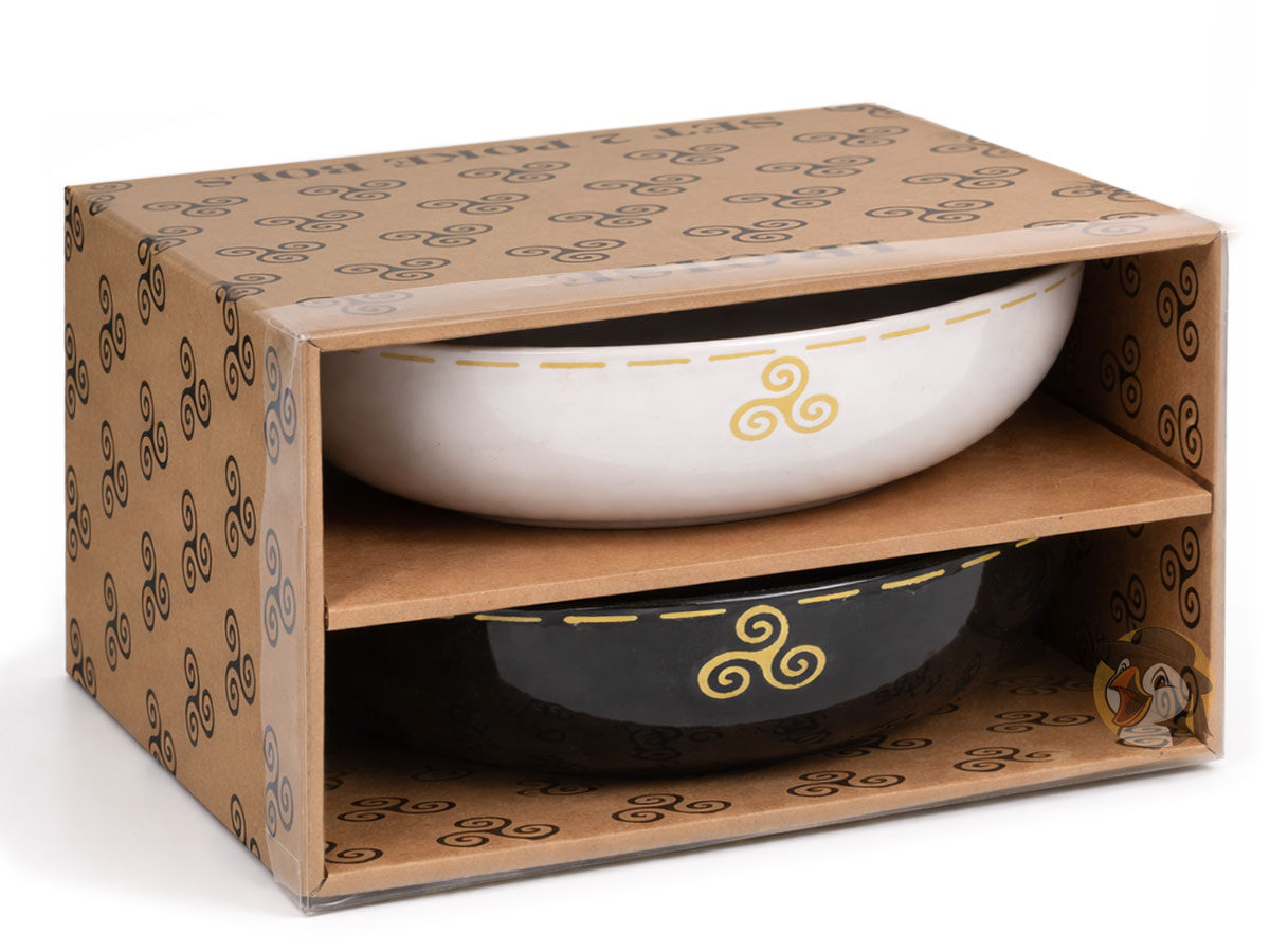 Coffret de 2 Assiettes creuses / Poke bowls Triskell noir et blanc – Iroise