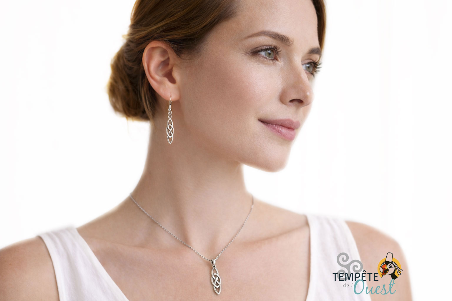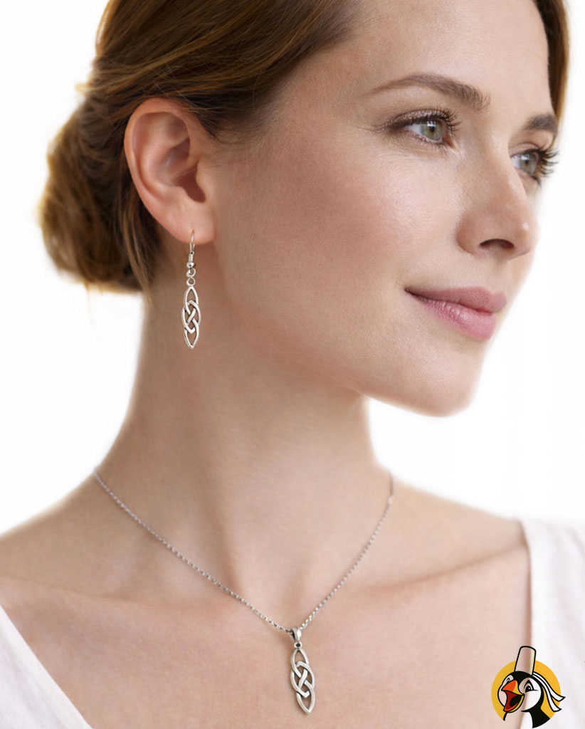Ce collier se porte aussi bien seul, pour une touche sobre et symbolique, qu’associé aux boucles d’oreilles assorties pour composer une parure celtique harmonieuse.