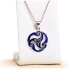 Ce sublime collier Triskell celtique associe élégance et symbolisme au travers de son pendentif ajouré aux reflets bleus intenses. Ses trois spirales entrelacées forment le triskell, motif emblématique de la culture celte représentant le cycle du mouvement, de l’équilibre et de la vie. En son centre, un nœud de la Trinité renforce la dimension spirituelle de ce bijou, évoquant l’unité entre les éléments. Conçu en cuivre et laiton et recouvert d’un plaquage rhodium éclatant, ce collier se distingue par son émaillage bleu vitreux, fondu au four à plus de 740°C. Porté sur une chaîne argentée fine (incluse), il se marie aussi bien à une tenue décontractée qu’à un style plus habillé. Une pièce lumineuse, parfaite pour celles et ceux qui souhaitent arborer un symbole fort tout en affirmant leur goût pour les bijoux au caractère breton.
