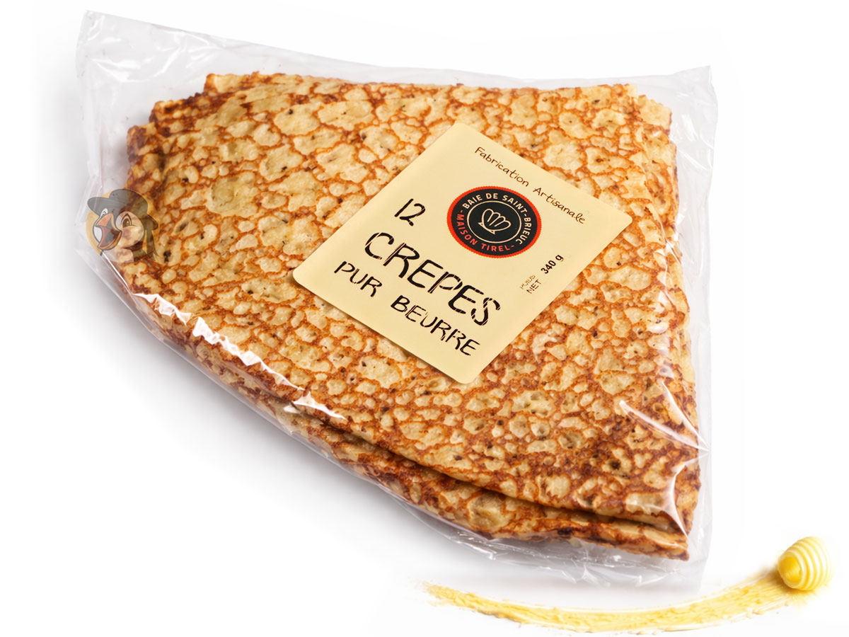 Ces 12 crêpes bretonnes pur beurre, proposées par la Maison Tirel à Saint-Brieuc en Bretagne, ont été confectionnées avec des ingrédients simples tel que du beurre et des oeufs frais et une cuisson maîtrisée. Leur texture fine et leur jolie dentelle dorée en font des crêpes idéales pour une dégustation nature ou légèrement garnie, au moment du goûter comme en dessert.