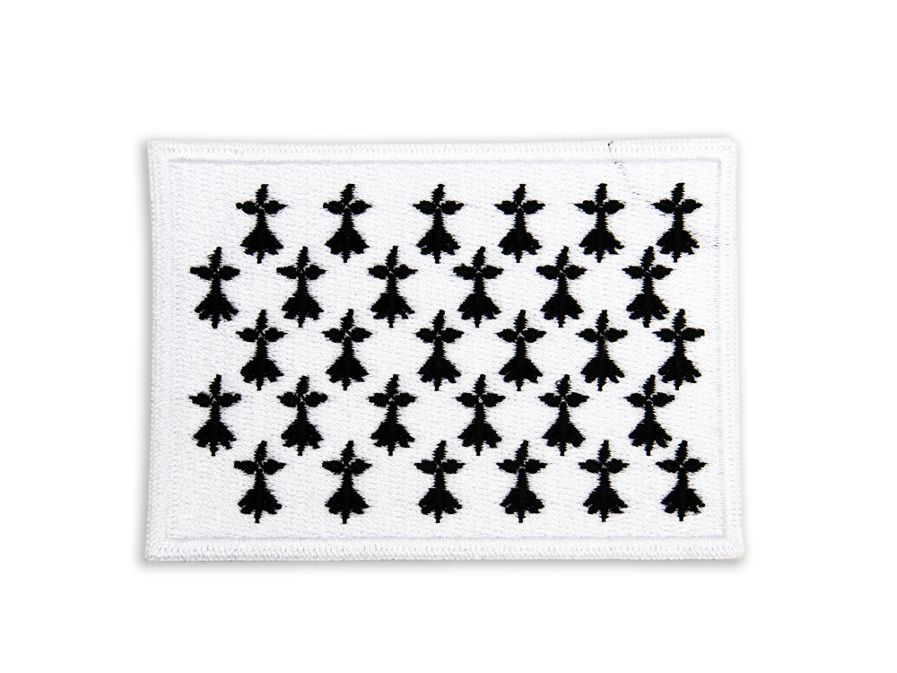 Cet écusson patch breton brodé reprend le motif traditionnel du drapeau “Hermine Plain”, aussi appelé Bannière d’hermines, une représentation traditionnelle emblématique de l’identité bretonne. Entièrement composé de mouchetures d’hermine noires sur fond blanc, ce drapeau était utilisé en Bretagne bien avant la création du Gwenn ha Du puisqu’il remonte au XIVe siècle. Cet écusson hermines thermocollant ou à coudre trouvera parfaitement sa place sur un vêtement, un sac à dos ou un accessoire textile, une véritable déclaration d’attachement à vos racines bretonnes et à l’Histoire de notre région !