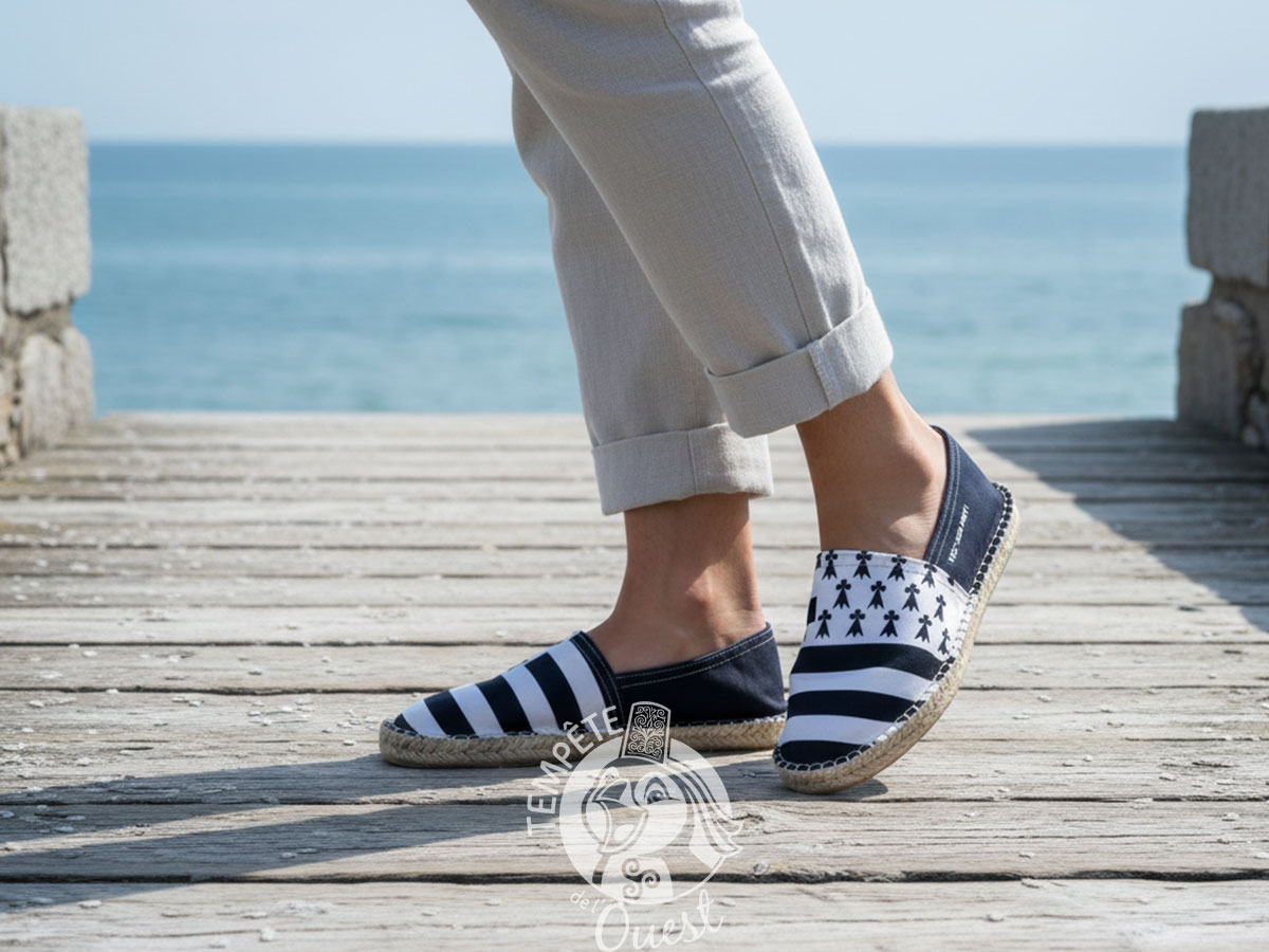 Ces espadrilles sont faites pour être portées facilement et pour accompagner aussi bien une tenue décontractée qu’un look estival plus soigné. Elles combinent l’esprit pratique d’une chaussure en toile, le confort d’une construction souple et une identité bretonne assumée !