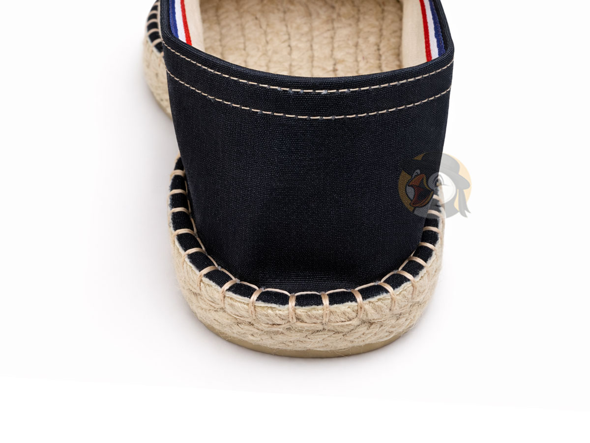Elles sont entièrement fabriquées en France, ce qui se ressent dans la superbe qualité des finitions et dans le respect du montage traditionnel. La toile est souple mais résistante, pensée pour être portée au quotidien pendant la belle saison. La semelle en corde tressée apporte la légèreté et la souplesse typiques de l’espadrille, tout en offrant une bonne tenue pour un usage extérieur, que ce soit en ville, en vacances ou lors de balades estivales. À l’intérieur, la semelle en corde conserve ce toucher naturel sous le pied, agréable même par temps chaud. À l’intérieur, la bande tricolore vient rappeler la fabrication française et ajoute une finition soignée que l’on remarque en enfilant la chaussure.