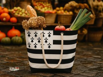 | Coloris | Noir et blanc : motif Gwenn ha du à l’avant Noir uni à l’arrière et à l’intérieur Anses blanches |