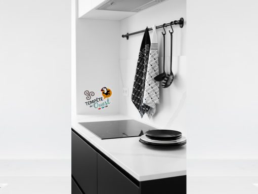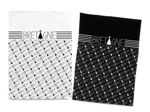 Un clin dâĆil graphique Ă la Bretagne qui ne passe pas inaperçu dans la cuisine ! Ce lot de deux torchons Bretagne assortis joue sur le contraste noir et blanc et sur un motif rĂ©pĂ©titif dans l’air du temps. Le mot âBretagneâ est revisitĂ© avec un graphisme moderne, oĂč la lettre A devient hermine et les lignes horizontales Ă©voquent subtilement le drapeau breton Gwenn ha Du. Chaque torchon mesure 50 x 70 cm, un format standard pratique pour essuyer la vaisselle ou couvrir un plat. La texture en coton tissĂ© assure une bonne absorption tout en restant agrĂ©able au toucher. Ă suspendre dans une cuisine contemporaine ou plus rustique, ils ajoutent une touche bretonne sans en faire trop. Impression au recto