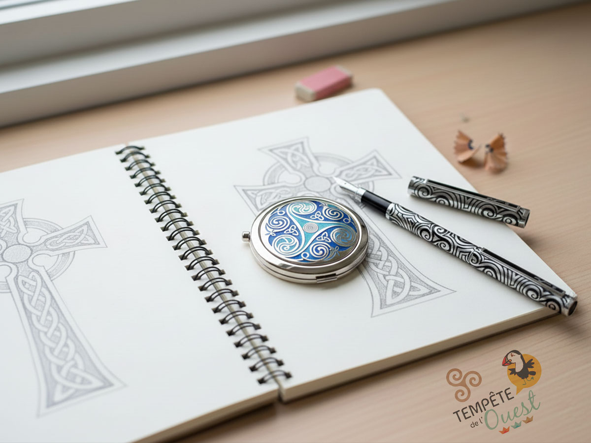Élégant, compact et inspiré de l’art celtique, ce magnifique miroir de poche séduit par son magnifique décor triskell en émail bleu, un verre coloré cuit au four à 760°C, sublimé par des motifs celtiques argentés finement travaillés. Avec ses 6 cm de diamètre, il se glissera facilement dans un sac à main, une pochette ou une trousse de maquillage, tout en apportant une touche de raffinement au quotidien. Conçu en cuivre, laiton et émail, puis plaqué rhodium, il offre une finition brillante, résistante et durable, un vrai bijou à lui seul ! Le boîtier métallique protège efficacement l’intérieur, qui renferme deux miroirs : un miroir classique et un miroir grossissant pour des retouches rapides ou plus précises. A ouvrir avec un bouton poussoir à l’avant.