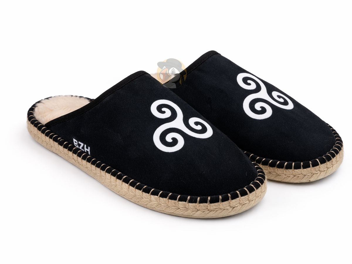 Le triskell, symbole fort de la Bretagne, apporte une touche celtique tout en affirmant fièrement l’ancrage breton de ces mules. Le marquage BZH sur le côté correspond à l’abréviation de “Breizh”, qui signifie Bretagne en breton. Conçues pour durer, la finition espadrille avec sa semelle en corde ajoute une note authentique et soignée, tout en garantissant une bonne tenue et une qualité durable.