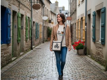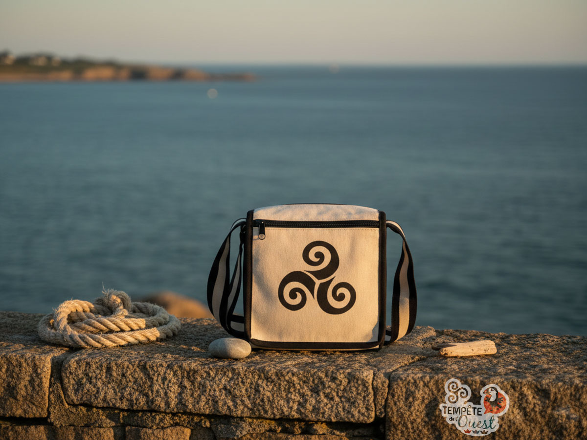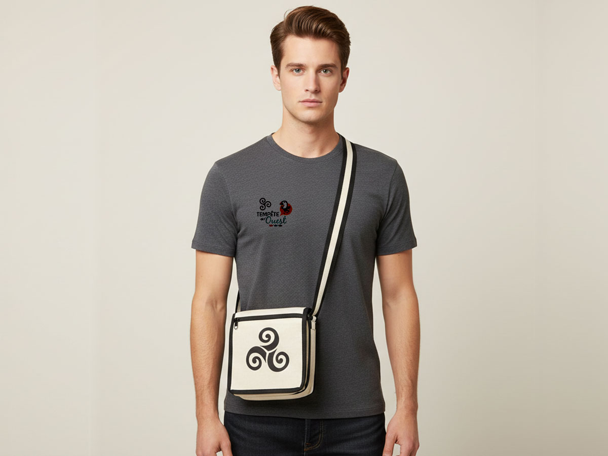 Cet adorable petit sac besace bicolore esprit breton avec son motif triskell sera vite votre allié du quotidien : assez compact pour ne pas encombrer, mais suffisamment pratique pour garder l’essentiel à portée de main. Avec son format d’environ 20 x 20 cm, il se portera facilement en bandoulière, en ville comme en balade !