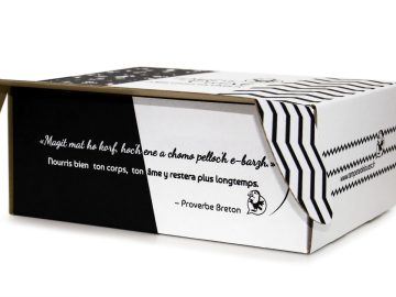 * Notez que si votre commande contient des produits trop volumineux par rapport à la taille de cette boîte cadeau, ils seront envoyés à part dans le colis : parmi les produits volumineux, des produits tels que les bouteilles (sauf l’huile de homard, la bière en 33cl et le cidre et jus en 33cl), les grands plats cuisinés (cocos de Paimpol 600g et kig ha farz), les paquets de chips de sarrasin ou encore les articles de vaisselle et de décoration seront trop grands pour ce coffret (liste non exhaustive). Vous pouvez toutefois opter pour la boîte cadeau grand format (voir la boîte).
