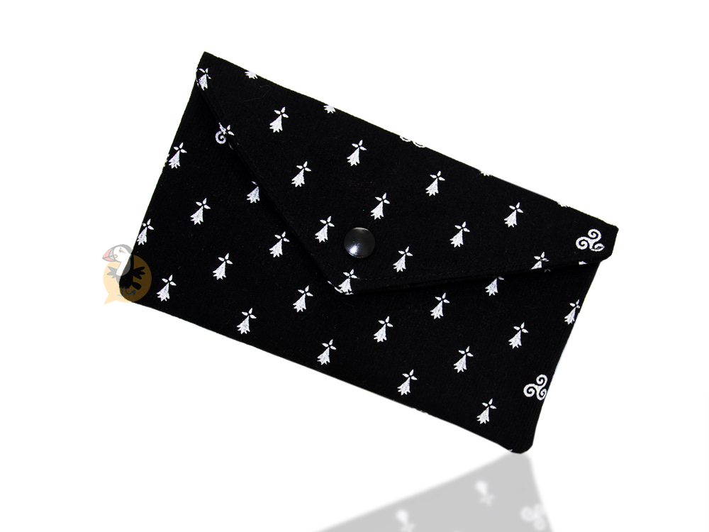 Cette élégante petite pochette renforcée a été entièrement conçue à la main par Valérie dans son atelier “Val Ecrin” à Ploumagoar à côté de Guingamp (22) : cette soignante à temps-plein déborde d’énergie et de créativité et s’adonne ainsi à sa passion pour la couture aux travers de créations pratiques, réutilisables et avec une petite touche bretonne qui fait toute la différence, à l’instar de cette très jolie pochette parée d’hermines et de triskells ! Multi-usage, vous pouvez vous en servir de petite trousse de rangement pour votre téléphone portable, des crayons, des cosmétiques, des bijoux, des pinceaux et petits outils pour vos loisirs créatifs et tant d’autres précieux objets à emporter partout avec vous.