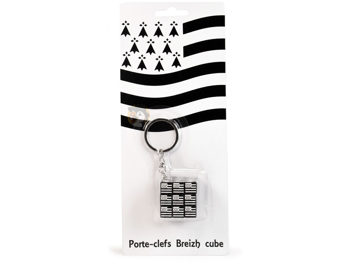 Ce porte-clés cube breton reprend le principe d’un petit casse-tête rotatif, décliné ici dans une version mini de 3 cm, facile à emporter partout. Compact et léger, il se glisse sans effort dans une poche, un sac ou s’accroche à un trousseau de clés. Conçu comme une version nomade du célèbre puzzle rotatif, ce porte-clés offre une manipulation fluide pour aligner les différents motifs situés sur chaque face Sa petite taille en fait un compagnon idéal pour occuper vos mains et stimuler votre réflexion lors des moments d’attente, que ce soit dans les transports ou dans une salle d’attente ! Revisité en version Bretagne, ses 4 faces sont constituées de symboles bretons: le drapeau breton Gwenn ha du, des triskell, des hermines, en noir et blanc et en version inversée. Le but du jeu reste le même que le cube multicolore : bien mélanger toutes les cases et parvenir à les réassembler de façon à ce que chaque face du cube soit composée des mêmes symboles.