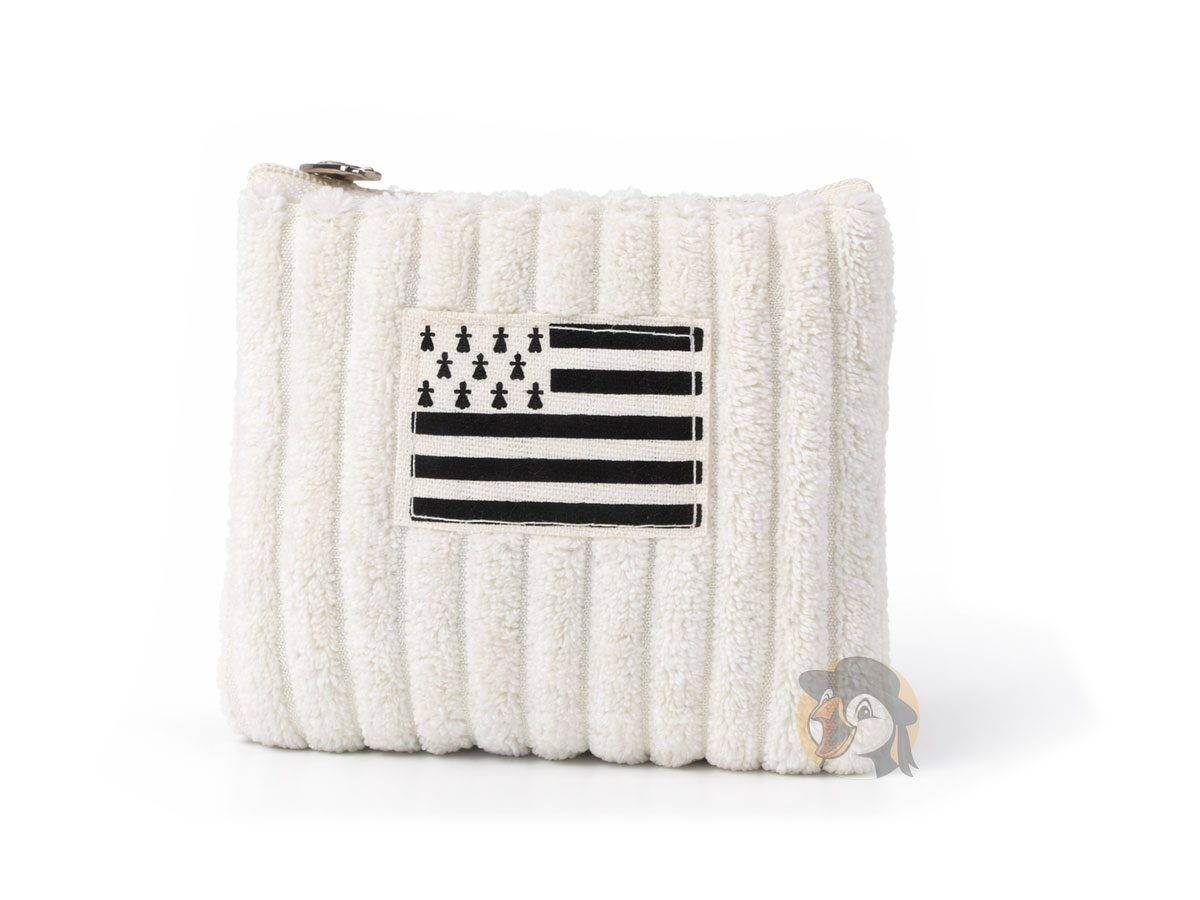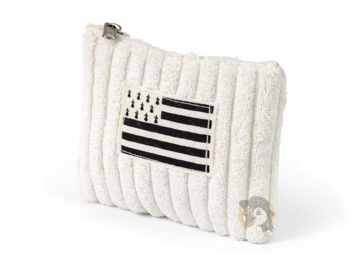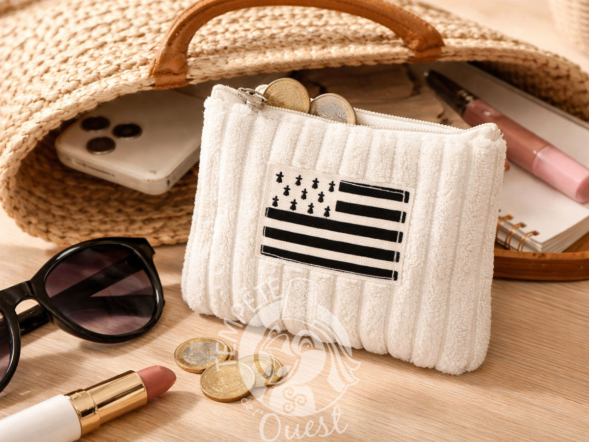 Cette petite pochette bretonne zippée polyvalente marie la douceur d’un aspect velours côtelé à la force du drapeau breton. Avec son coloris crème tout doux et son écusson du drapeau breton Gwenn ha Du cousu au centre, ce porte-monnaie breton devient un véritable compagnon du quotidien, aussi agréable à regarder qu’à manipuler !