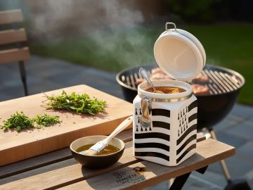 Fini les sachets mal refermés ou les boîtes ternes et sans âme : ce pot à sel ou à épices décoré du drapeau breton Gwenn ha Du apportera une touche de caractère à votre cuisine ! Très pratique au quotidien grâce à son système de fermeture clip métallique hermétique, il protège parfaitement le contenu de l’humidité et conserve les arômes, que vous y mettiez du sel, des épices ou du sucre. Sa céramique épaisse et brillante lui offre une belle robustesse, tout en mettant en valeur les motifs noirs et blancs du Gwenn ha Du. Avec sa forme carrée moderne et son décor sur chaque face jusqu’au couvercle, c’est un accessoire aussi utile qu’esthétique en cuisine ! Facile à manipuler, facile à nettoyer et pensé pour durer, il peut être utilisé en pot à sel à portée de main près de la plaque de cuisson, en pot à épices sur une étagère ou même comme petit objet déco pour afficher fièrement ses origines bretonnes.