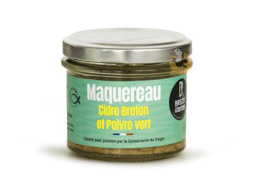 IngrĂ©dients | Maquereaux (52%), crĂšme, cidre breton (6%), oignons, poivre vert (eau, vinaigre, sel) (1.2%), sel de Ty an Holen, jus de citron, ail, Ă©paississant : agar-agar, carraghĂ©nane (extrait d’algues), poivre. |