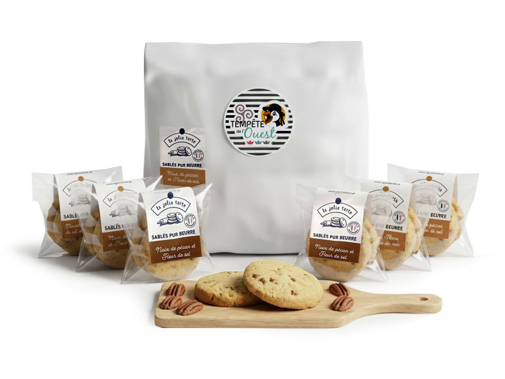 | Ingrédients | Sablés Bretons Fleur de sel & noix de pécan : farine de blé, beurre, sucre, poudres à lever, noix de pécan, fleur de sel de Guérande (0.6 %). Sablés Bretons Chocolat & fleur de sel : farine de blé, beurre, sucre, chocolat 44 % (sucre, pâte de cacao, beurre de cacao, lécithines (soja), vanilline) (10 %), poudres à lever, fleur de sel de Guérande (0.6 %). Sablés Bretons Sarrasin & pépites de caramel : farine de blé, beurre, farine de sarrasin (30 %), sucre, pépites de caramel (3 %), poudres à lever, fleur de sel de Guérande. |
