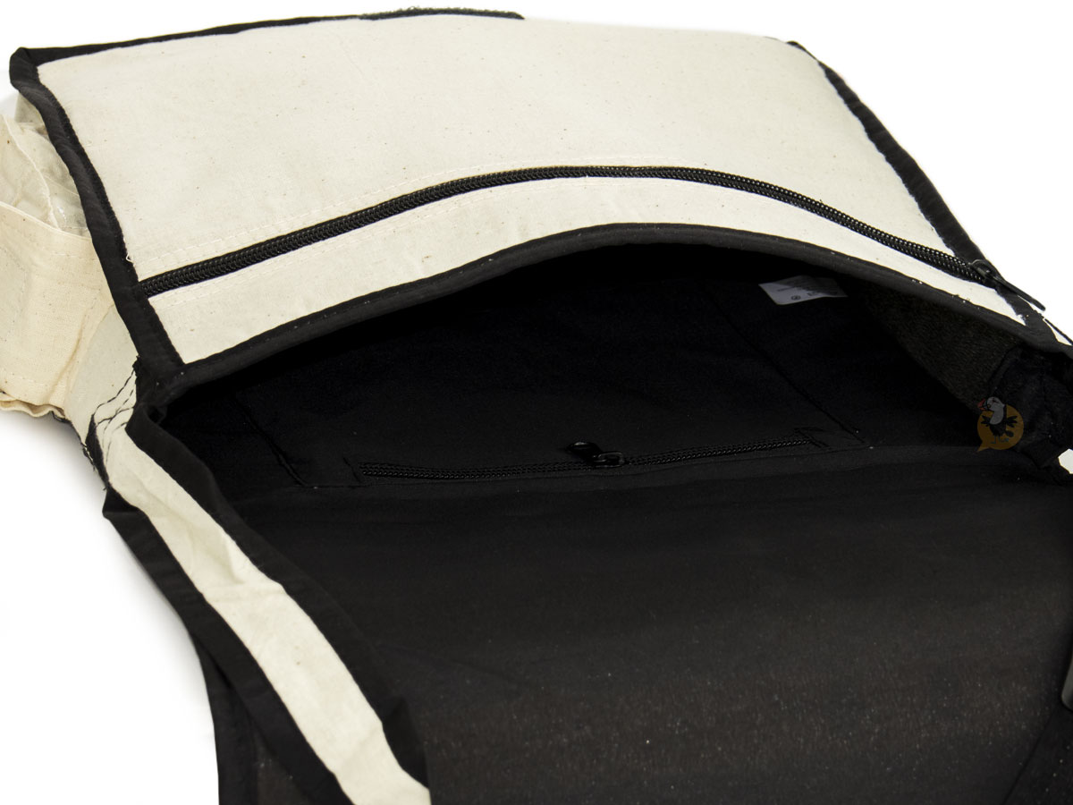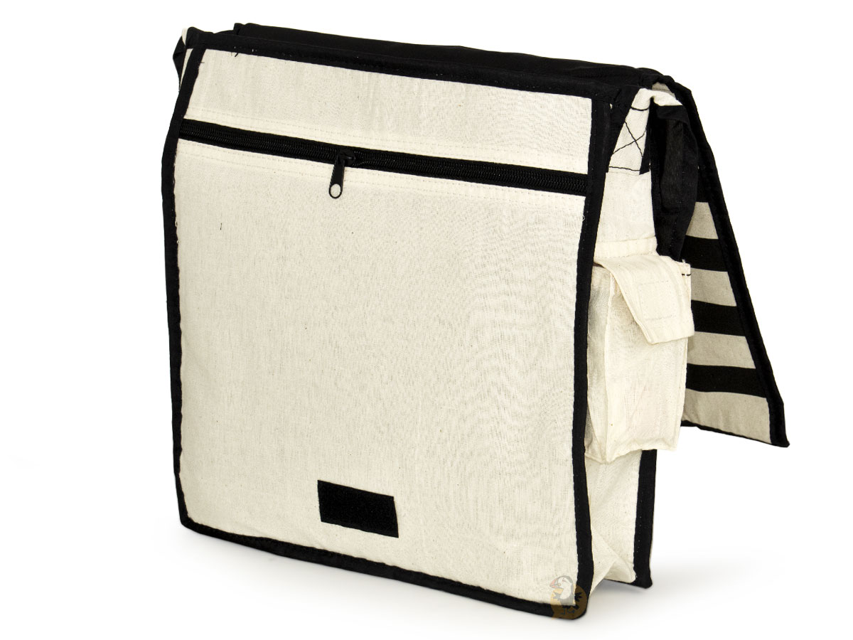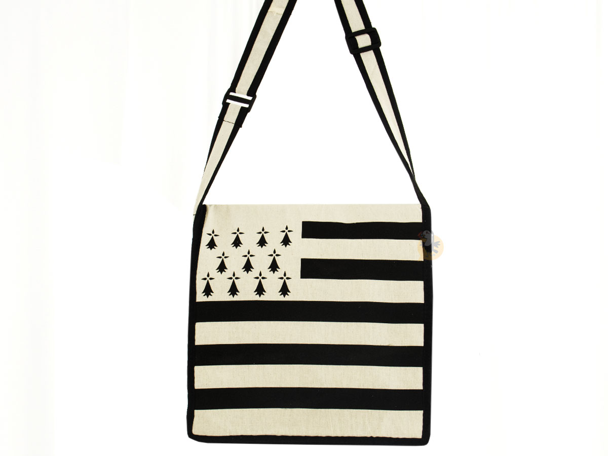 Ce sac besace / bandoulière affiche fièrement les couleurs du Gwenn ha Du ! Imprimé sur les deux faces, il accompagnera vos sorties ou trajets quotidiens : léger et pratique, il est confectionné en 100% coton écru et noir, avec un léger rembourrage pour plus de tenue. Il se ferme facilement grâce à une bande scratch et dispose de plusieurs poches intérieures et extérieures pour bien organiser vos affaires. Avec son format carré de 30 × 30 cm et sa bandoulière réglable, il se portera facilement en ville comme en balade.