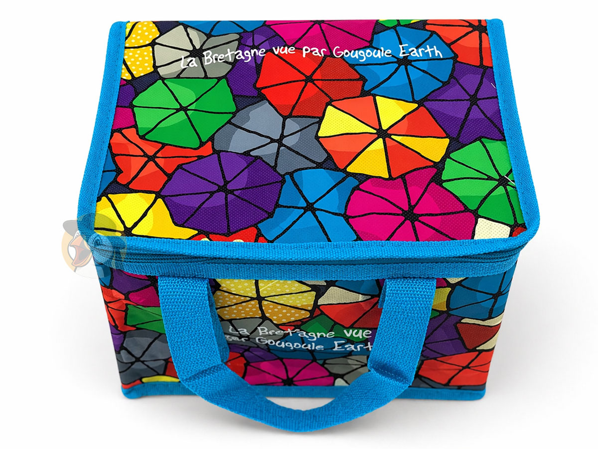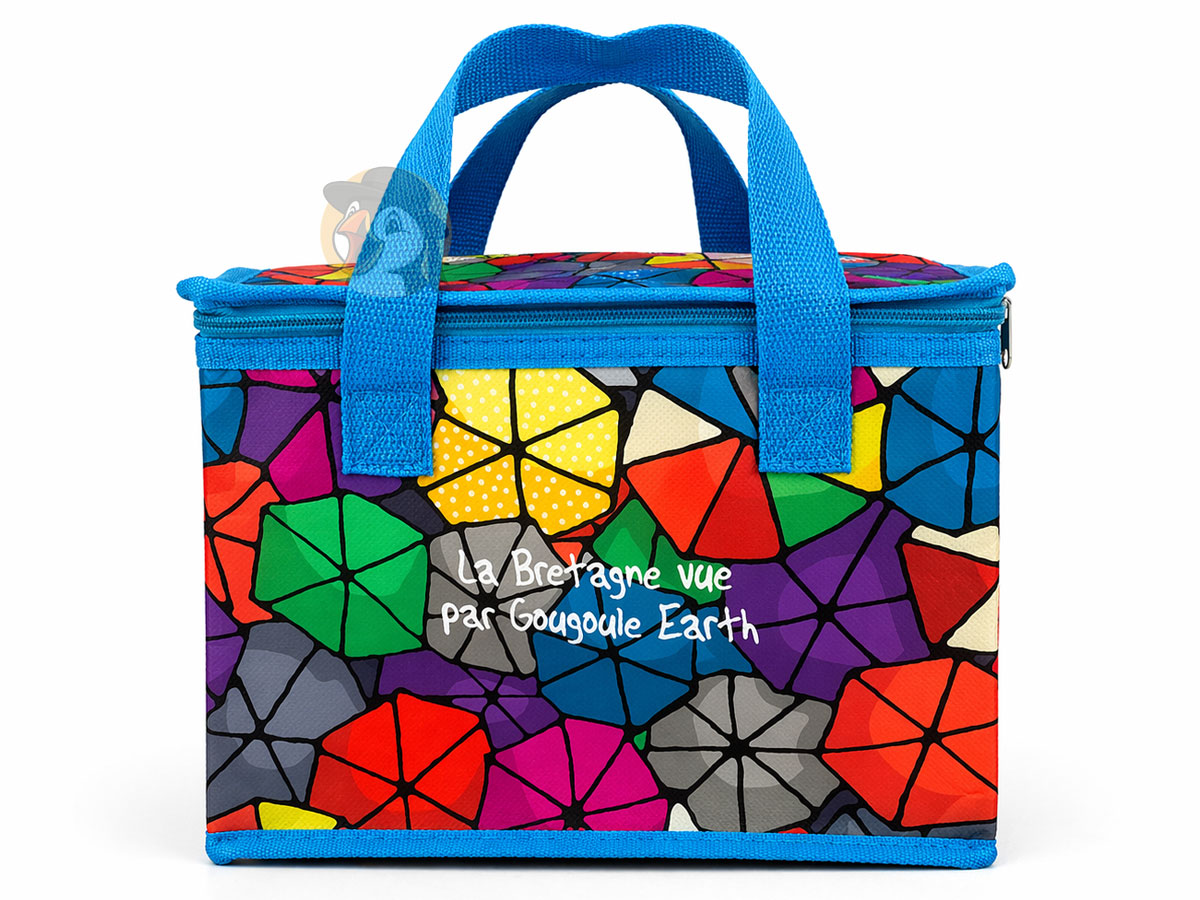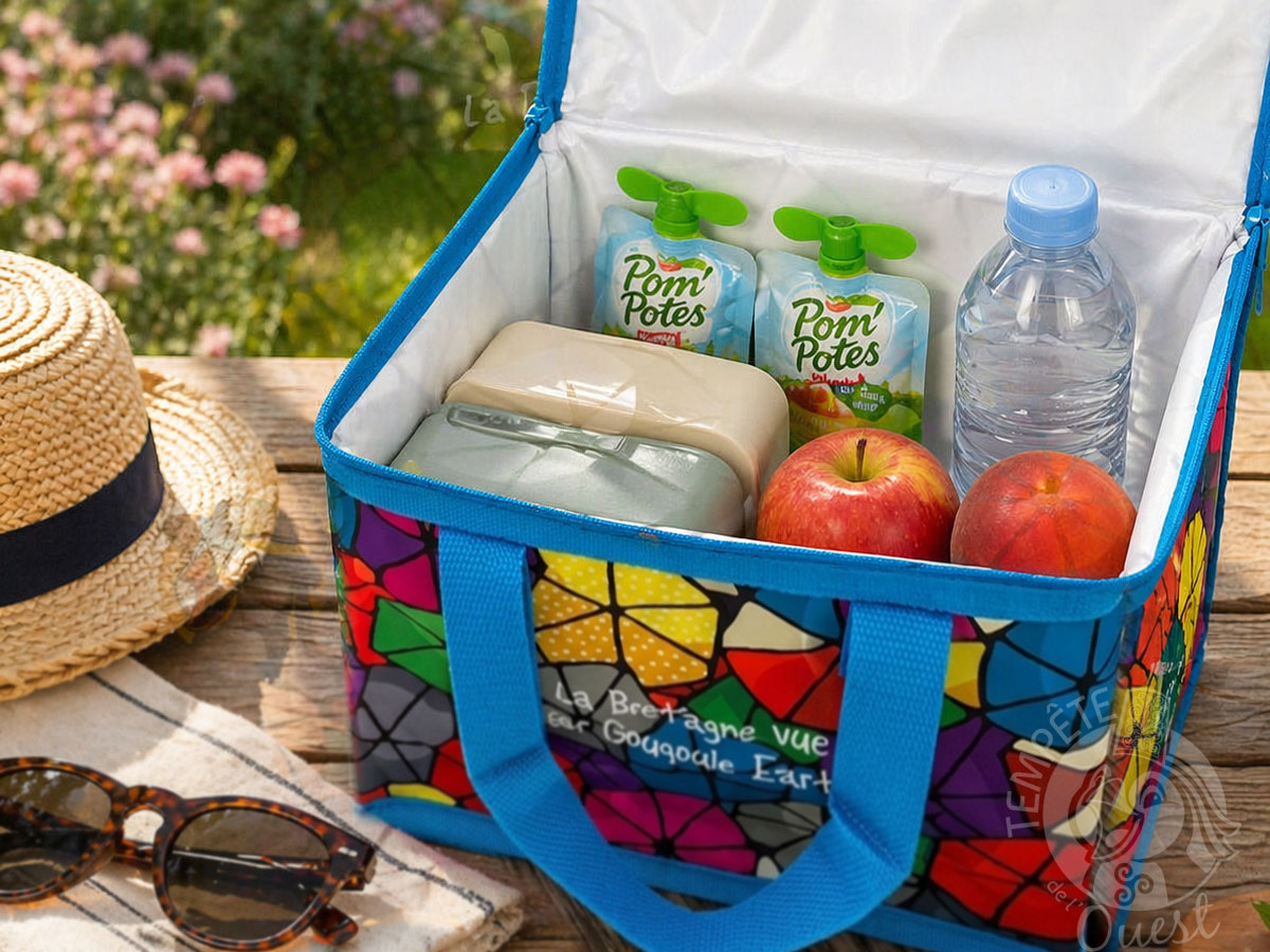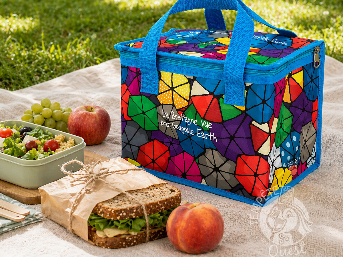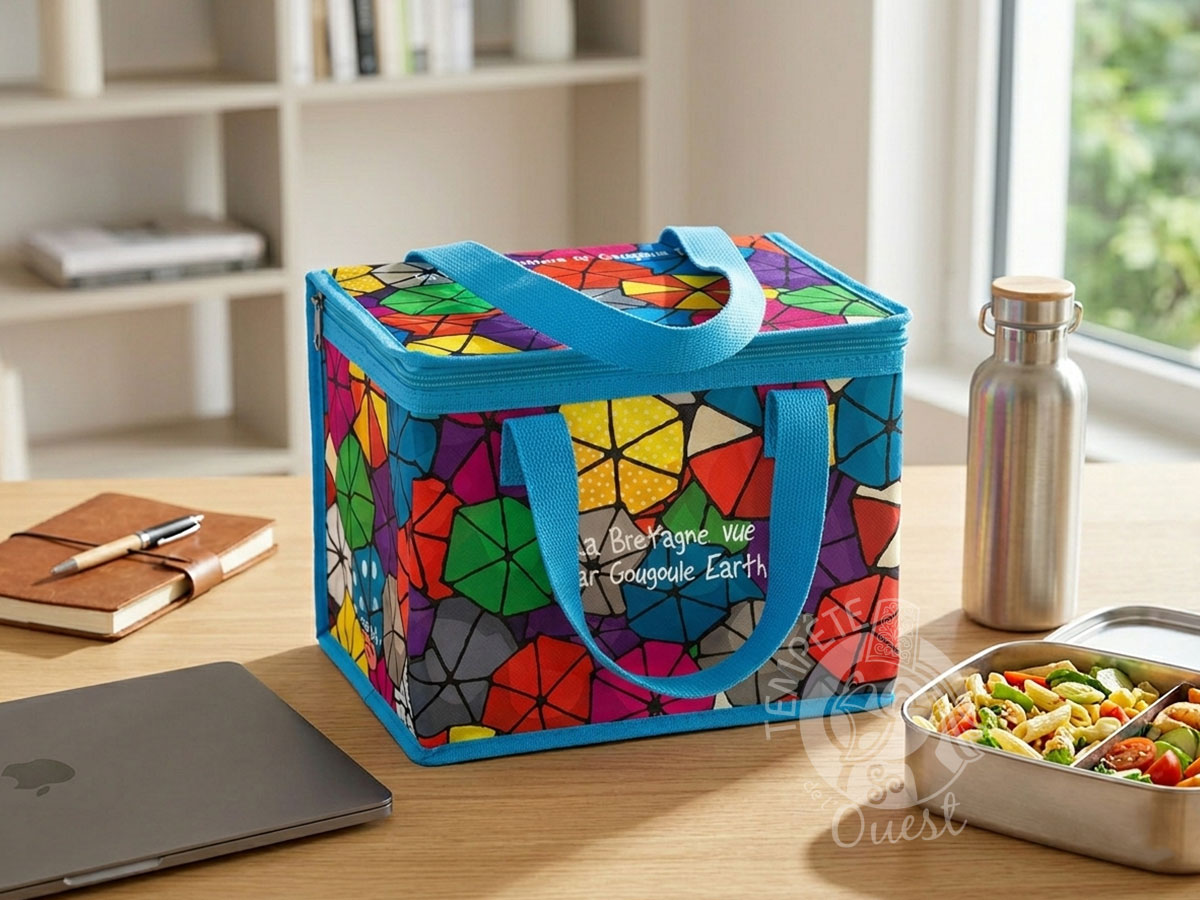 Marre des glacières grises et tristes qui ressemblent à des blocs de béton ? Découvrez notre sac isotherme “La Bretagne vue par Gougoule Earth”, l’accessoire indispensable pour vos pique-niques, déjeuners au bureau ou sorties à la plage. Avec son motif façon mosaïque colorée, il propose une vision décalée de la Bretagne, comme si on la regardait d’en haut… à la manière d’une célèbre carte interactive bien connue, revisitée ici avec humour !