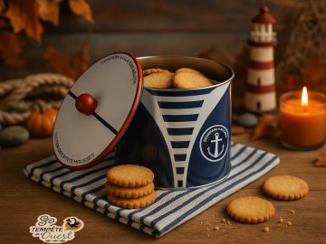 Pour ranger des biscuits et bonbons, découvrez cette jolie boîte seau dans l’esprit marin : costume marin, pompon rouge et ancre marine. Très pratique pour conserver efficacement vos biscuits, le couvercle du seau contient un absorbeur d’humidité pour une conservation optimale de vos biscuits et préserver leur croustillant.
