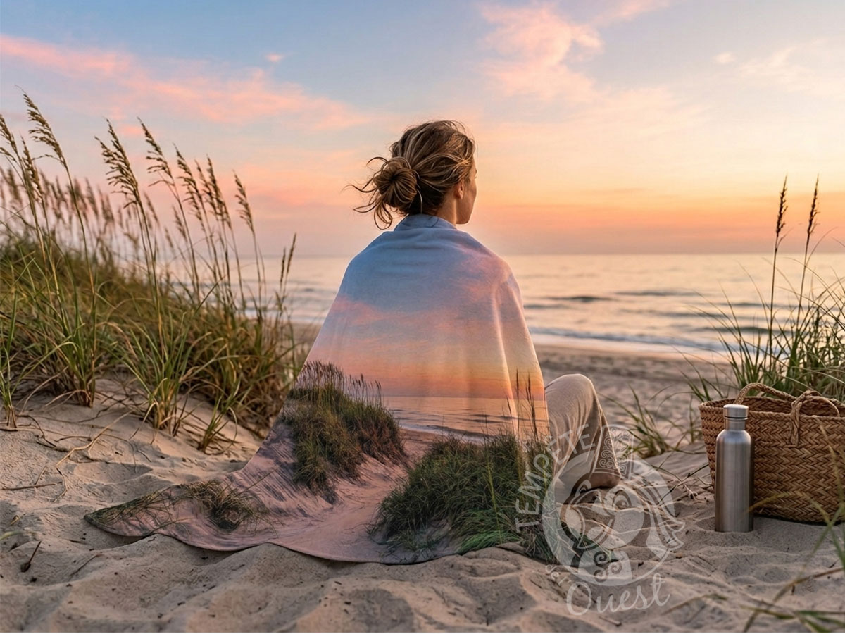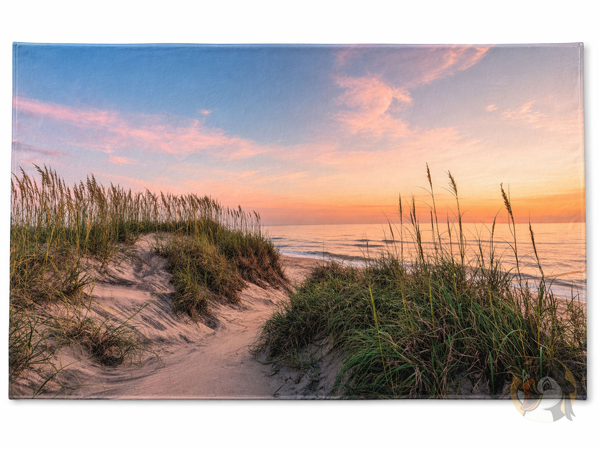 Cette superbe serviette de plage capture l’essence même des côtes sauvages, là où les herbes hautes des dunes ondulent sous un ciel de fin de journée. Le visuel rend hommage à ces paysages de lande préservée, offrant un coin de littoral à emporter partout avec soi. C’est le clin d’œil parfait pour ceux qui ont le cœur en Bretagne et qui aiment retrouver cette atmosphère apaisante à chaque escale au bord de l’eau ou pour s’accorder une sieste dans l’herbe !