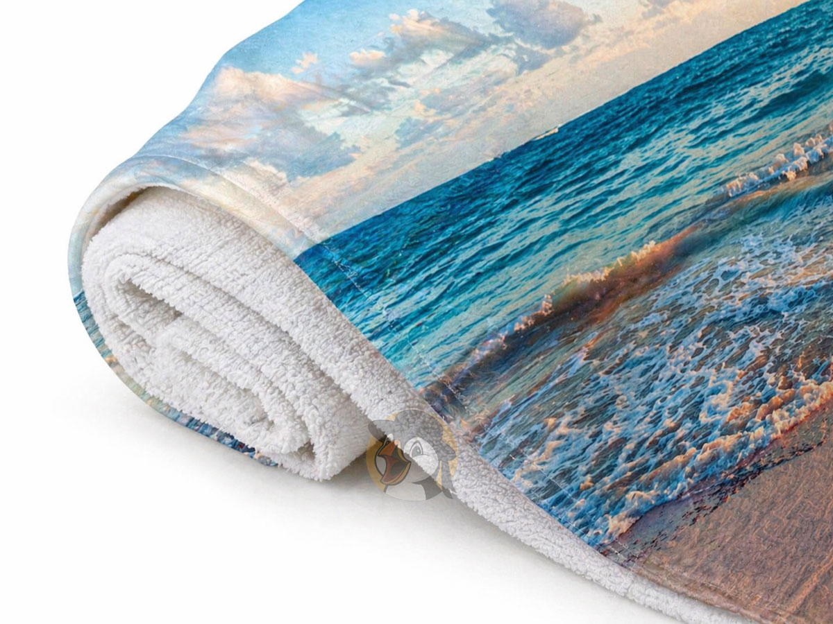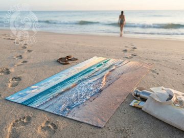 Évadez-vous instantanément avec cette serviette de plage qui capture toute la magie d’un lever de soleil sur l’océan ! Son imprimé haute définition transforme votre emplacement sur le sable en une véritable fenêtre ouverte sur le grand large et la côte Atlantique.