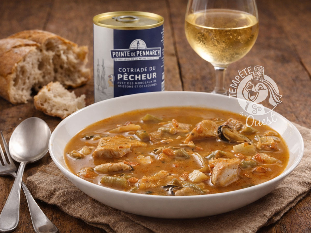 Autrefois, la cotriade était surtout dégustées par les marins lors de leur retour de pêche : cette recette ancestrale a été remise au goût du jour par La Pointe de Penmarc’h avec de vrais morceaux de poisson, des moules, de la tomate, carottes, pommes de terre, oignons, haricots verts et navets. Une soupe pleine de saveurs et respectueuse de la tradition bretonne.
