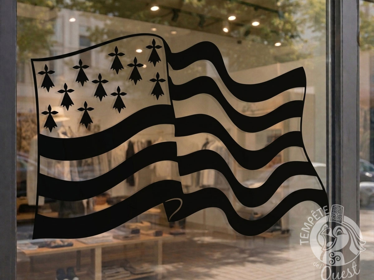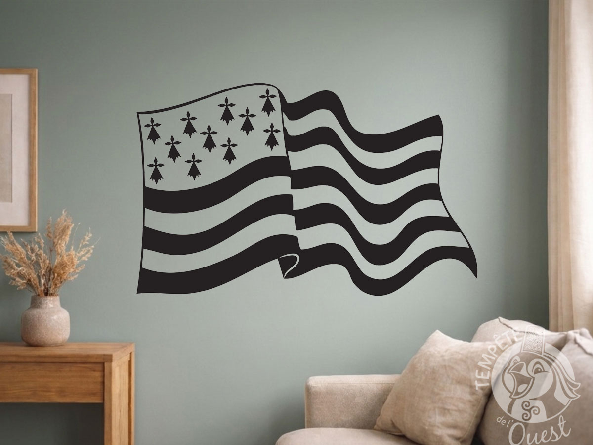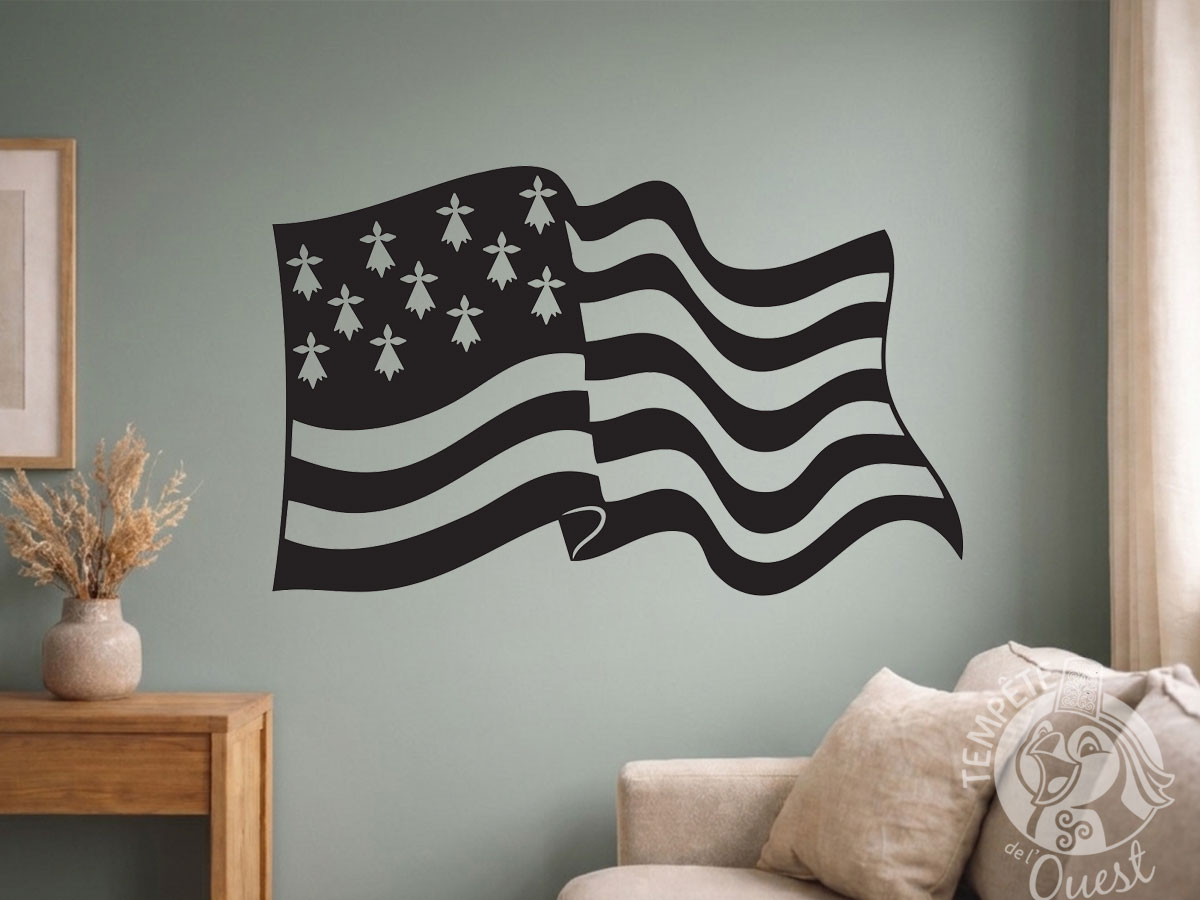 Grand Autocollant stickers décoratif Drapeau breton flottant – 64 x 40 cm