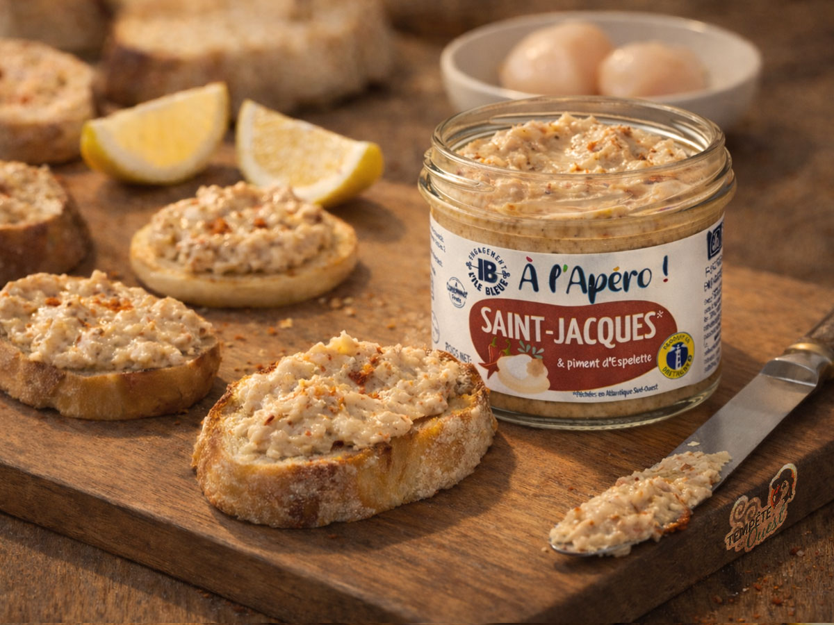 Succombez au mariage raffiné de l’océan et du terroir avec ce tartinable de Saint-Jacques au piment d’Espelette, une création savoureuse signée L’Île Bleue, conserverie marine des Côtes d’Armor. Cette recette bretonne artisanale met à l’honneur la noblesse de la noix de Saint-Jacques, délicatement travaillée avec du fromage frais pour obtenir une texture onctueuse et fondante en bouche. La douceur marine est ici relevée par la chaleur subtile et parfumée du piment d’Espelette, qui apporte une note de caractère sans jamais masquer la finesse des fruits de mer.
