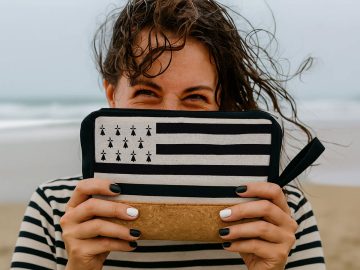 Cette très jolie trousse de toilette en coton et polyester est orné du drapeau breton de chaque côté ainsi que d’un revêtement en liège véritable sur le bas pour un côté naturel, ainsi que d’une fermeture zippée sur le dessus. Vous pourrez bien sûr y ranger vos cosmétiques et produits d’hygiène et l’emmener en voyage ou en déplacement avec vous, ou bien vous en servir comme pochette de rangement pour tout autre type de produits !